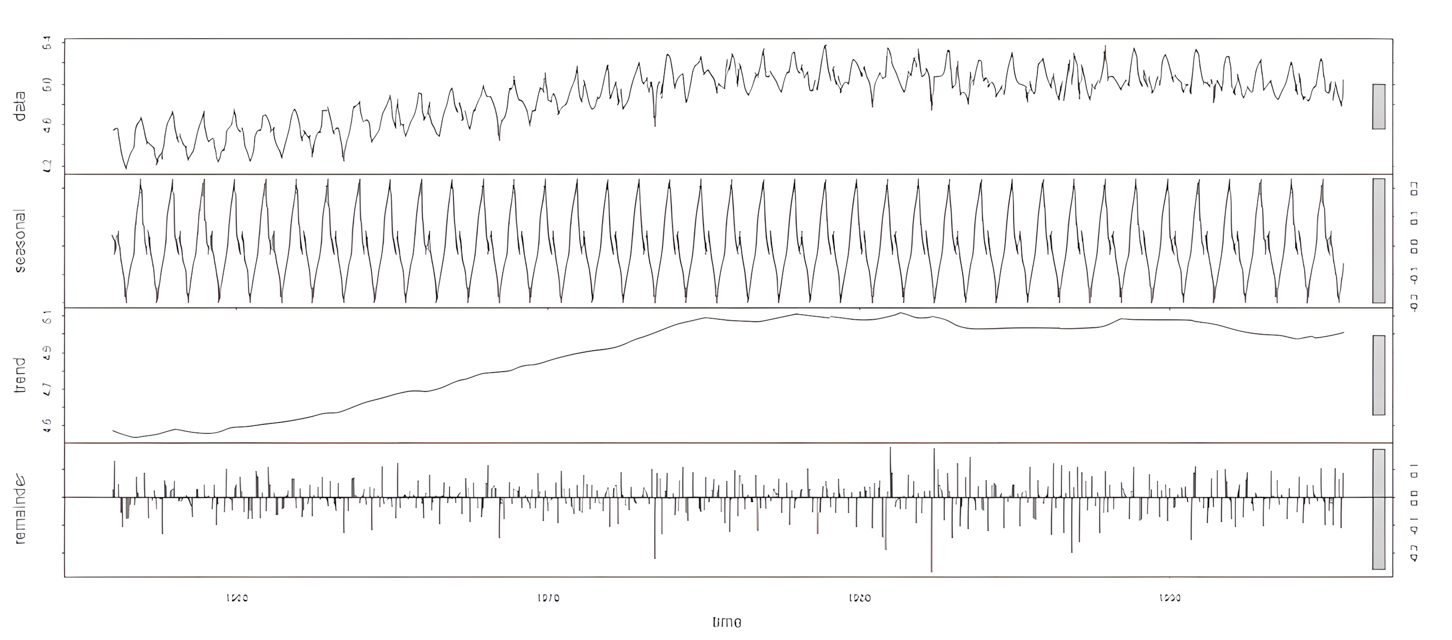 V R existuje veľmi pekná funkcia stl, ktorá rozloží časový rad na trendovú, sezónnu a náhodnú zložku.