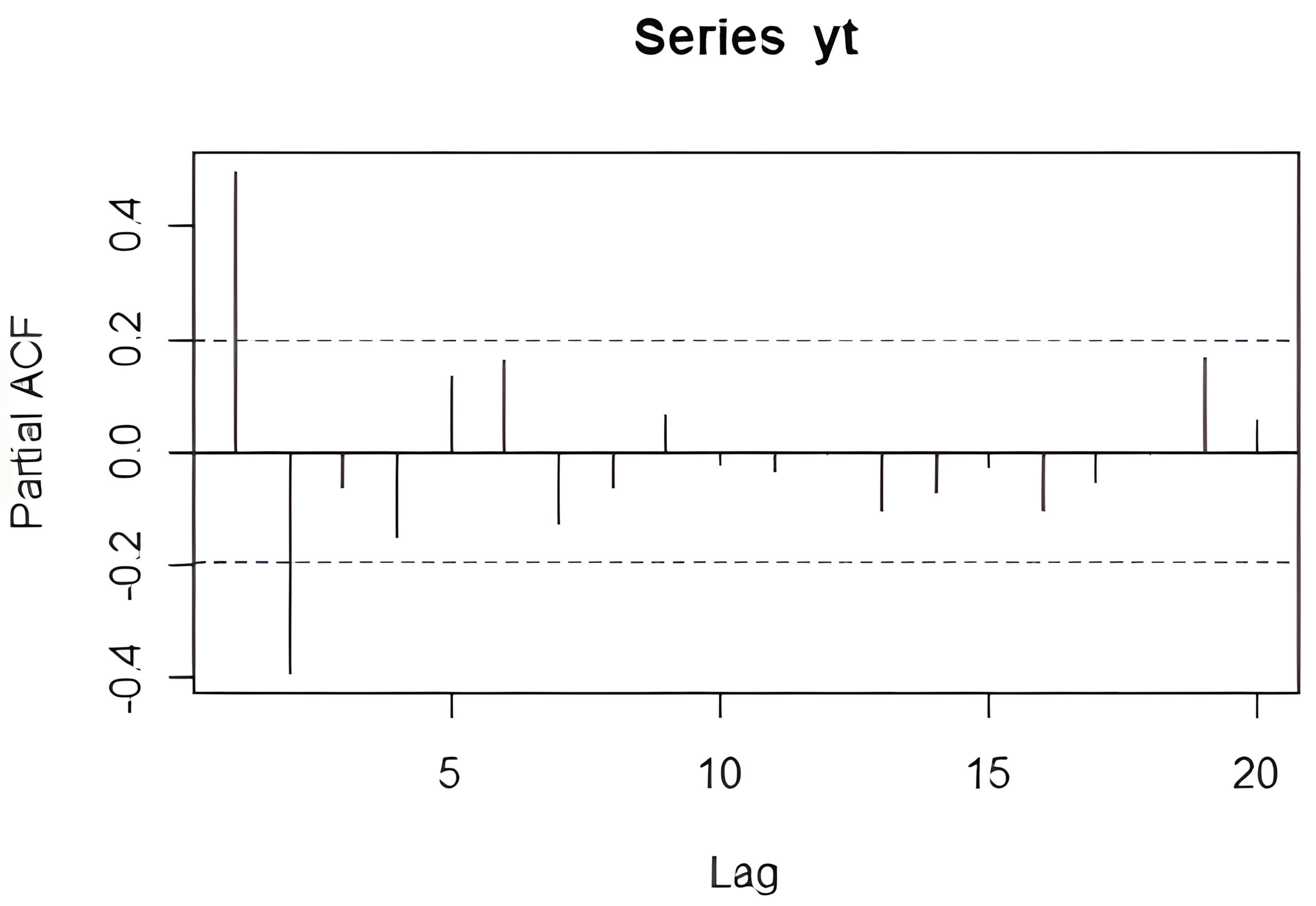 Partial autocorrelations of series ‘yt’, by lag