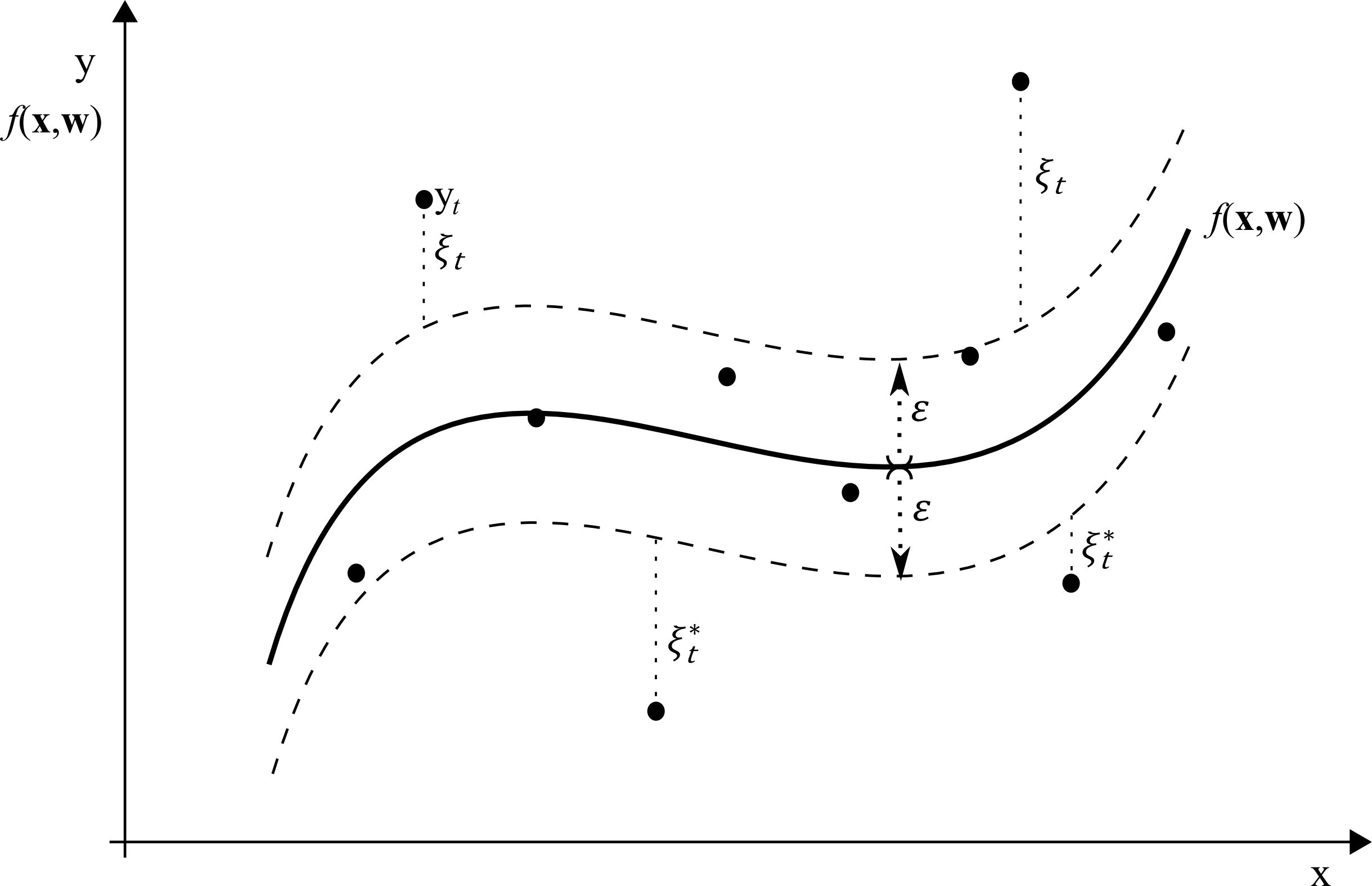 SVR sa snaží nájsť funkciu, ktorá má maximálnu presnosť, pričom toleruje malú chybu ε v predikcii. Pri optimalizácii sa hľadajú len tie pozorovania, ktoré prekračujú túto tolerančnú hranicu – tzv. „support vectors“ – čo robí SVR robustnou voči šumu a odľahlým hodnotám.